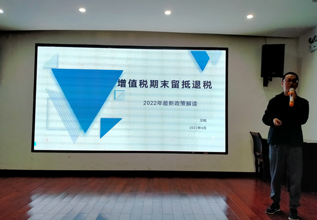緊接著(zhù),汪銘副主任又從增值稅期末退稅主題的概念、適用政策的納稅人必須符合的條件、具體的退還政策、以及征管要求等方面對——增值稅期末留抵退稅政策做了具體講解。汪銘副主任善于用圖表的方式,將重要的知識點(diǎn)梳理劃分、對比呈現,使得參與人員對重要的知識點(diǎn)能深刻的掌握。