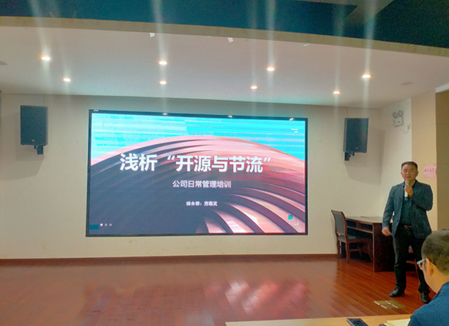 方志義經(jīng)理有著(zhù)多年的從軍經(jīng)歷,平日工作謹小慎微,思考問(wèn)題全面周到,在團隊管理方面有著(zhù)豐富的經(jīng)驗。此次分享他主要圍繞日常管理中的“開(kāi)源與節流”這一主題,以省財政廳印發(fā)《關(guān)于進(jìn)一步厲行節約堅持過(guò)緊日子的若干舉措》的通知中提到的,控制壓減行政開(kāi)支的十二條具體措施為切入點(diǎn),從節約用電、用水、用紙及杜絕用餐浪費等方面分別進(jìn)行詳細講解。方志義經(jīng)理還提到“開(kāi)源節流”是企業(yè)永續經(jīng)營(yíng)的法寶,勤儉節約是中華民族的傳統美德,節約需要我們每個(gè)人從身邊做起,從小事做起,節約每一度電、每一張紙、每一滴水、每一粒糧食,養成良好個(gè)人習慣,提升企業(yè)文化內涵。經(jīng)過(guò)方志義經(jīng)理的用心介紹,使得參與人員對日常工作、生活中的節約意識有了進(jìn)一步的提升,將對企業(yè)日后的發(fā)展發(fā)揮重要作用。