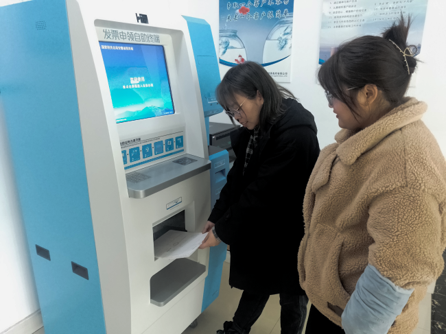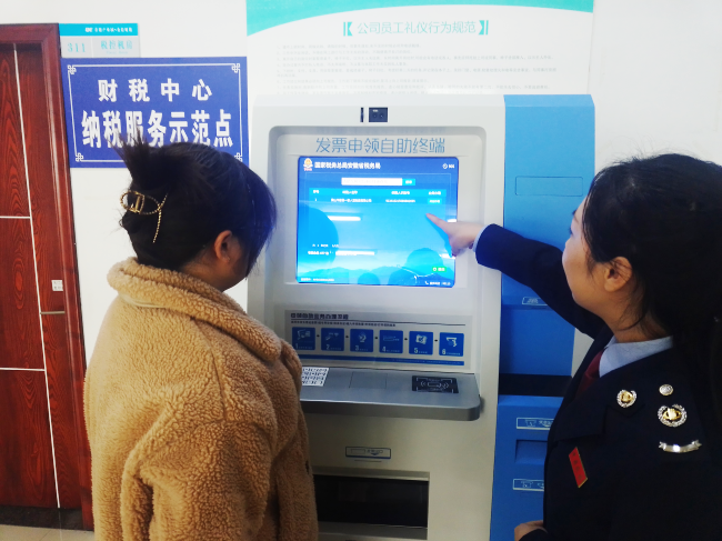 “現在公司有了自助領(lǐng)票終端,領(lǐng)發(fā)票就像在ATM機上取錢(qián)一樣簡(jiǎn)單方便,再也不用去稅務(wù)辦稅大廳排隊了。”2月10日,在歙縣富堨經(jīng)濟園區——黃山市金信財稅代理事務(wù)所有限公司內,一臺發(fā)票申領(lǐng)自助終端順利通過(guò)網(wǎng)絡(luò )調試。公司財務(wù)會(huì )計張捷在歙縣稅務(wù)局工作人員的示范引導下,以代理企業(yè)黃山市一家人豆業(yè)有限公司的身份快捷領(lǐng)出增值稅發(fā)票20份。整個(gè)領(lǐng)取過(guò)程從辦稅人微信實(shí)名掃碼到選擇單位、到發(fā)票領(lǐng)用,僅用了3分鐘,方便省時(shí)又高效。