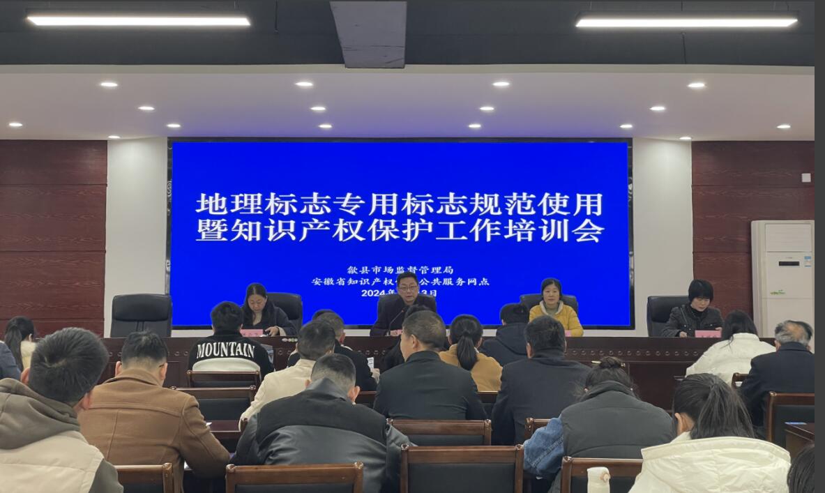 3月13日下午,由歙縣市場(chǎng)監督管理局主辦的“地理標志專(zhuān)用標志規范使用暨知識產(chǎn)權保護工作培訓會(huì )”在黃山市首家知識產(chǎn)權“一站式”服務(wù)工作站——安徽香寧眾創(chuàng )科技服務(wù)有限公司召開(kāi)。縣市場(chǎng)監督管理局黨組成員丁大勇出席會(huì )議并講話(huà),各市場(chǎng)監管所專(zhuān)員、歙縣地理標志專(zhuān)用標志使用企業(yè)負責人、相關(guān)協(xié)會(huì )負責人,縣局知識產(chǎn)權股工作人員等70余人參加了會(huì )議。會(huì )議由縣市場(chǎng)監管局知識產(chǎn)權股股長(cháng)洪云飛主持。
