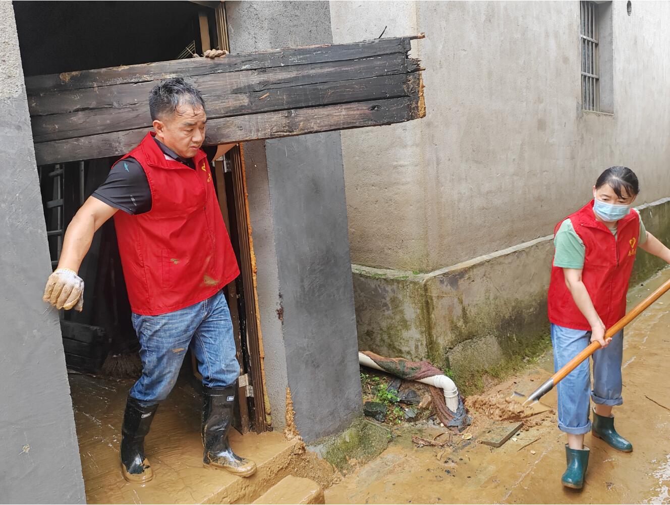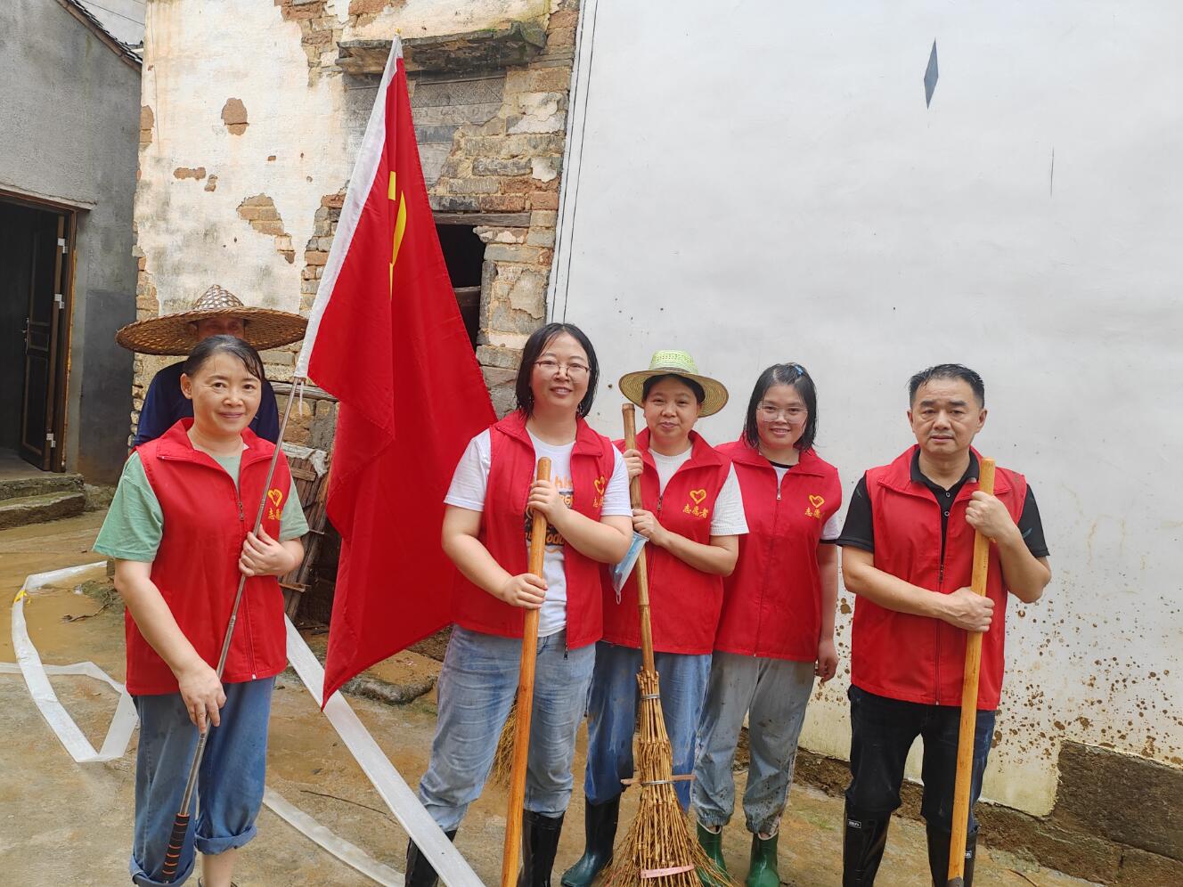 上圖為:深入富堨鎮仁里村開(kāi)展災后恢復重建