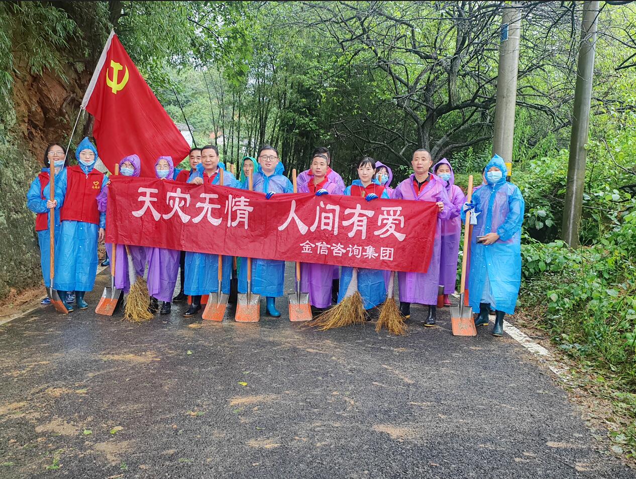 2024年7月1日,歙縣又遭受了強降雨,河水暴漲。金信財稅黨支部再次組織了集體救災工作,15人金信職工深入支援富堨鎮仁里村,協(xié)助進(jìn)行災后恢復重建工作。大家冒雨掄起鐵鍬清淤泥、鏟垃圾,豆大的汗水與雨水、泥水相融,以“連續作戰,不懼辛苦”的精神向黨踐行了“不忘初心,牢記使命”,以實(shí)際行動(dòng)迎接中國共產(chǎn)黨成立103周年!