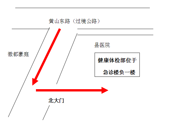 一、健康體檢部位置(線(xiàn)路1:不要上醫院平臺,沿著(zhù)縣醫院與徽都豪庭之間的主干道直行300米左轉,從北大門(mén)進(jìn)入縣醫院,直行40米到達健康體檢部;線(xiàn)路2:上醫院平臺,從一樓門(mén)診大廳,沿樓梯下到負一樓健康體檢部。)