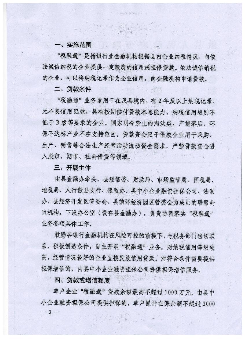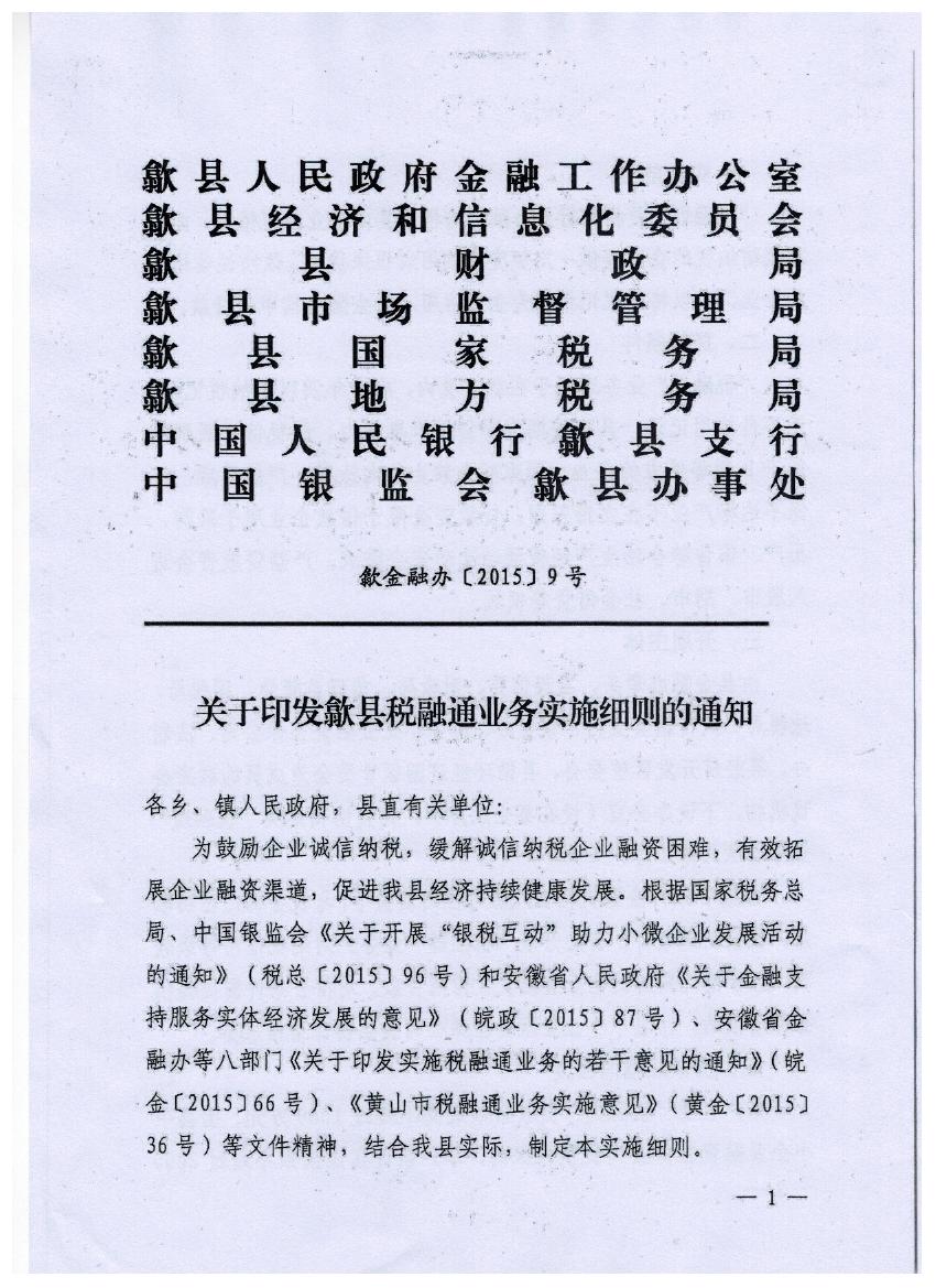 關(guān)于印發(fā)歙縣稅融通業(yè)務(wù)實(shí)施細則的通知