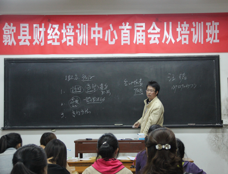 由歙縣財經(jīng)培訓中心舉辦的首屆會(huì )計從業(yè)培訓班于2014年5月5日晚在歙縣縣委黨校成功開(kāi)課。